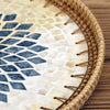 Round Mother Of Pearl Rattan Tray is made with handwoven rattan material mixed mother of pearl is durable and eco-friendly, add a natural touch to any room. Impress your guests with these beautiful hand woven serving trays made with natural Rattan. In effortlessly chic hand-woven round tray has a designer motifs on it which make it a center of attraction . It can also be beautifully used as a display piece on your coffee table as a wall decor.