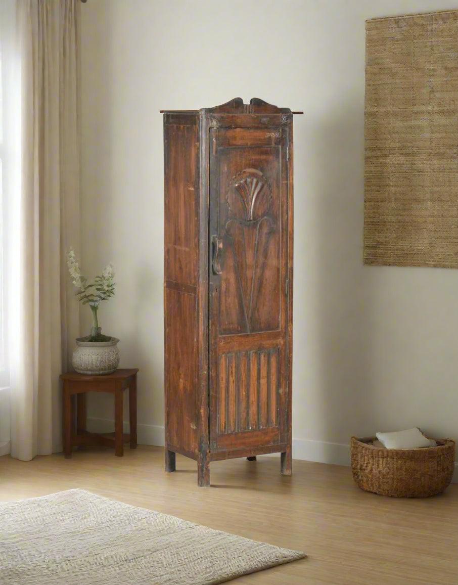 Experience timeless elegance with the Royal Bloom Almirah, a masterpiece crafted from premium teak wood. This vintage-style storage unit showcases intricate hand-carved floral motifs, symbolizing grace and heritage. The rich, warm patina of the wood, combined with its sturdy construction, ensures both durability and aesthetic charm. Perfect for adding a touch of rustic luxury to any space, this almirah blends functionality with artistic craftsmanship. Whether placed in a bedroom, hallway, or living area, the Royal Bloom Almirah serves as a statement piece that enhances your home’s décor with its regal charm.